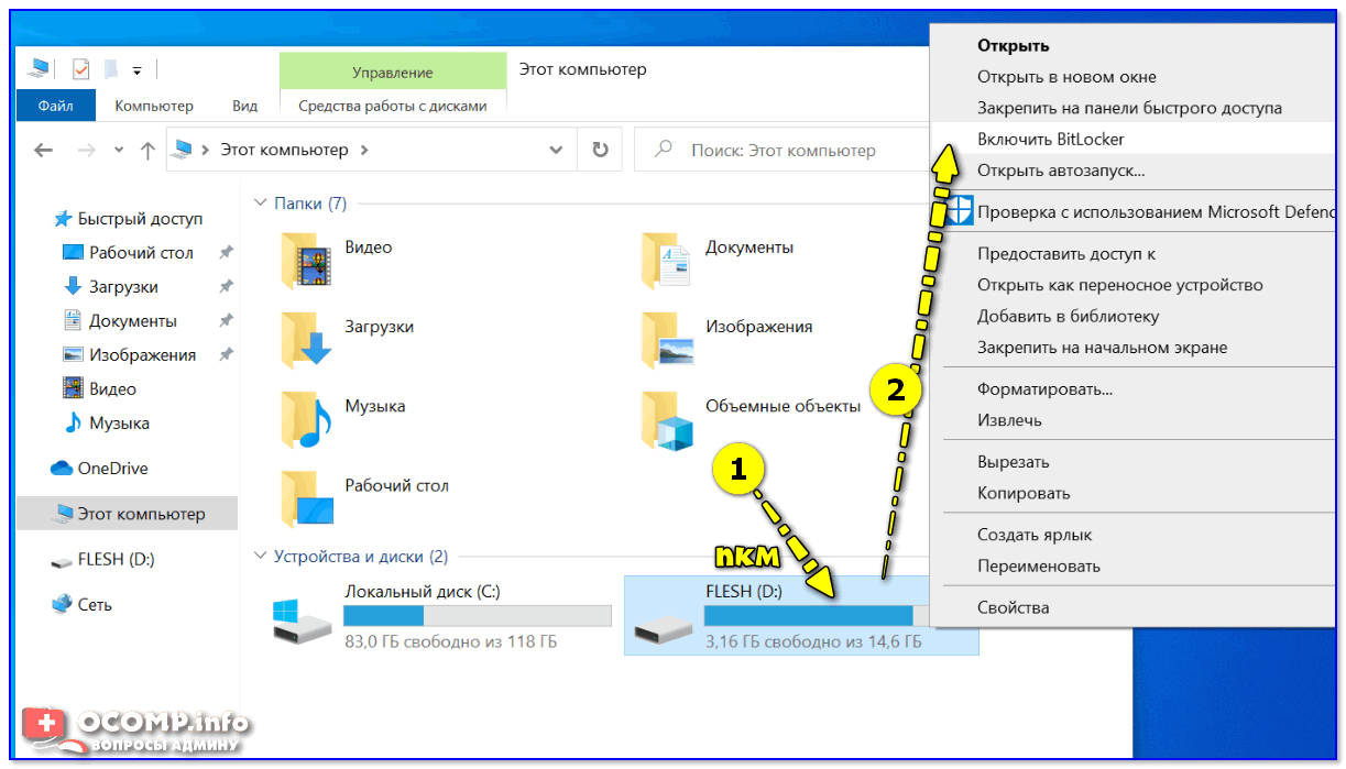 В Windows 10 Pro есть встроенная функция (BitLocker) для быстрого шифрования и установки пароля на диски и флешки. Это хороший способ скрыть от посторонних свою конфиденциальную информацию (и, кстати, достаточно надежный!).
