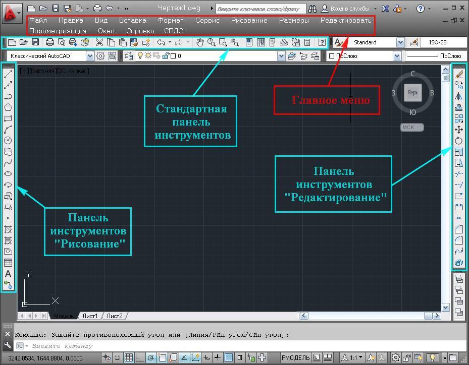 Рис. 4. Режим рабочего пространства : «Классический AutoCAD».