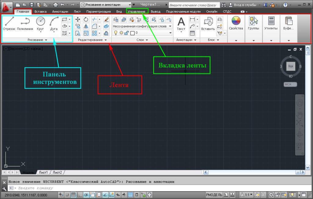 Если Вы работаете в режиме рабочего пространства : « Рисования и аннотации ». См. Рис. 2.