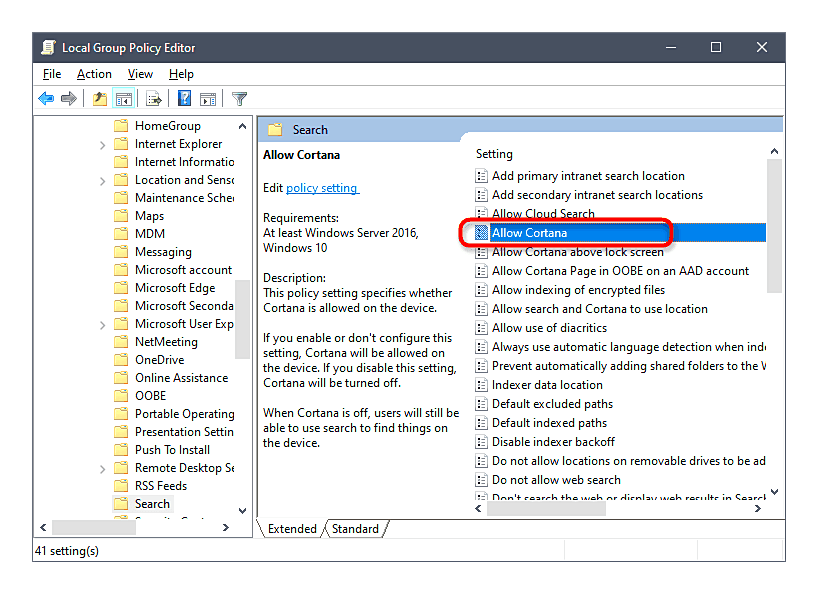 Чтобы отменить изменения и восстановить Кортану в будущем, вы можете просто вернуться сюда, найти значение AllowCortana и удалить его или установить для него значение 1.