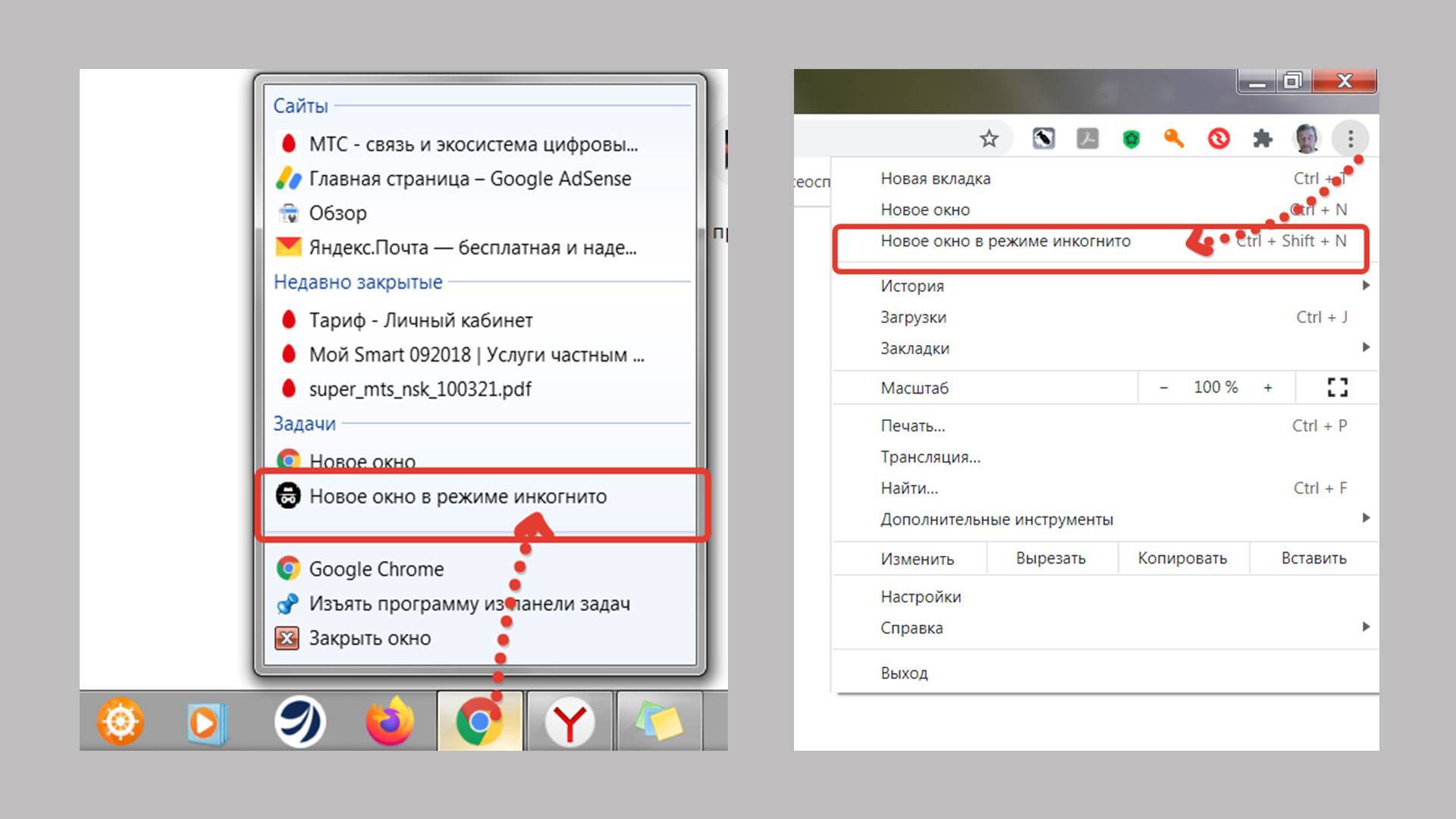 Включить режим инкогнито в браузере Chrome можно следующим образом: