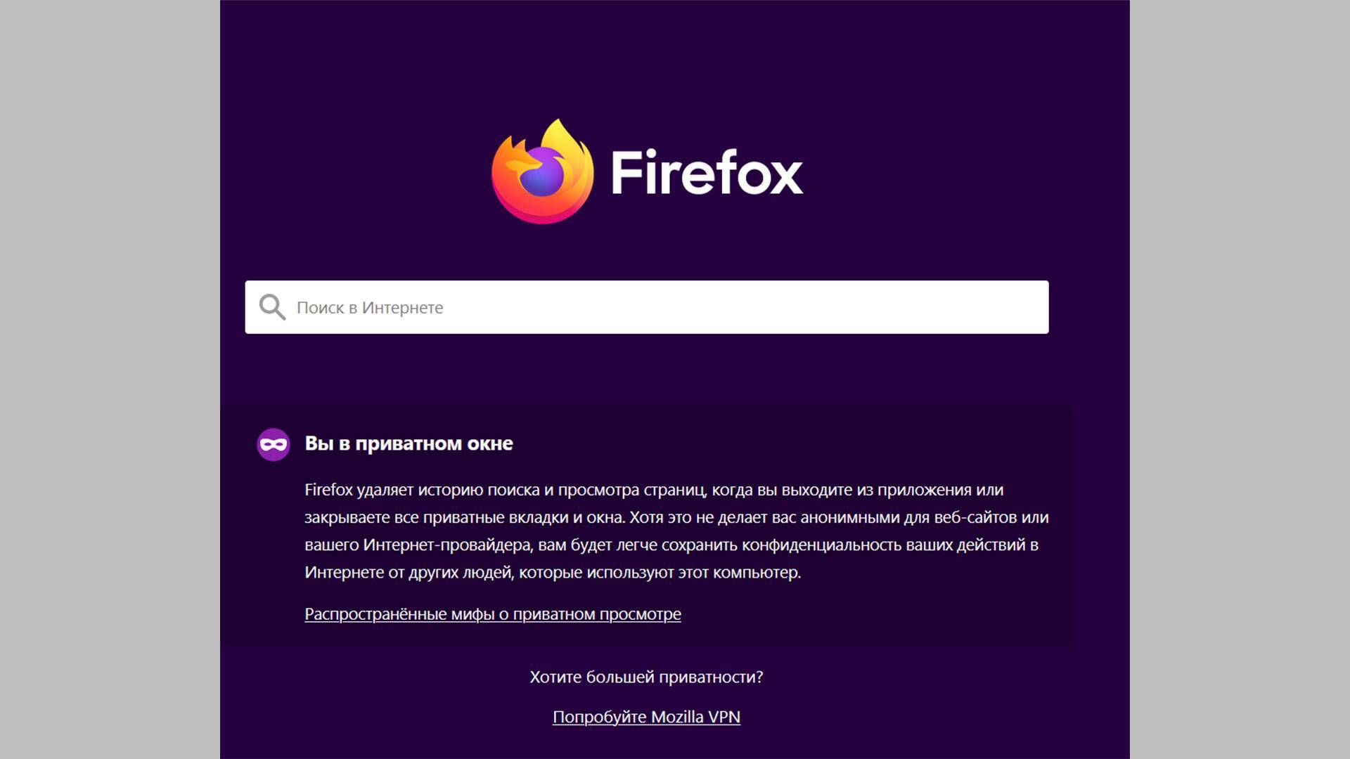 Выбрав пункт меню «Создать приватное окно», вы переключитесь в режим приватности