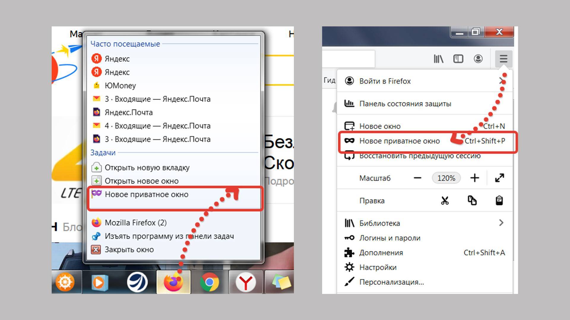Для моментального переключения в Mozilla Firefox используйте комбинацию «Ctrl+Shift+P». Для переключения вручную следуйте инструкции.