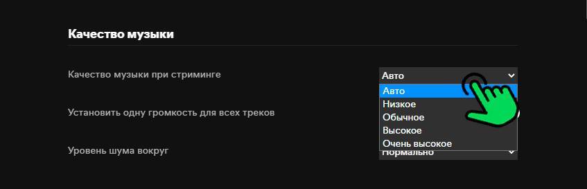 Настройки качества звука Spotify
