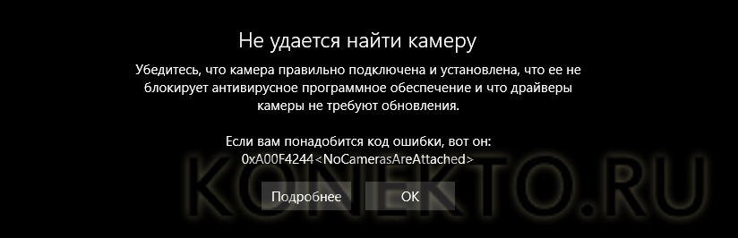 Если камера включена и исправна, пользователь увидит на экране ноутбука или ПК свое изображение. В противном случае появится следующее сообщение.