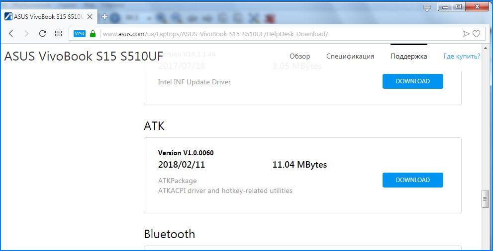 Пролистайте вниз, найдите пакет АТК (при наличии Hotfix, Smart Gesture, Touchpad/Keyboard).
