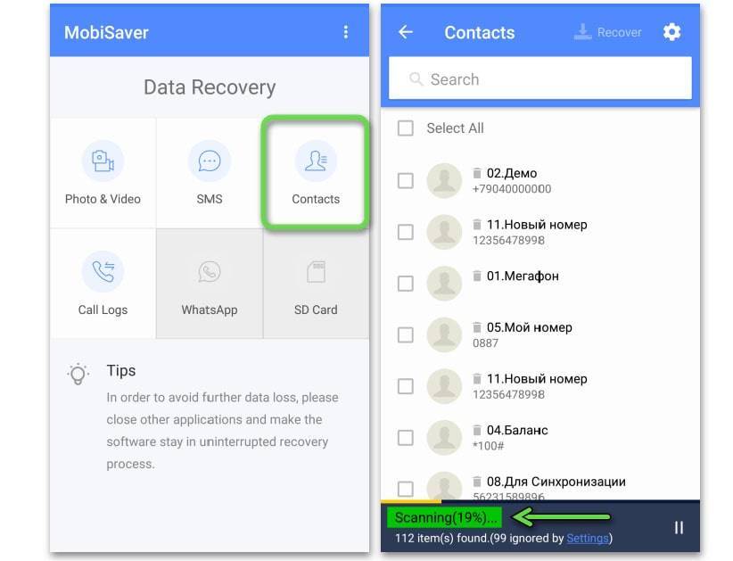 Инструкция по восстановлению контактов при помощи этой программы выглядит следующим образом: