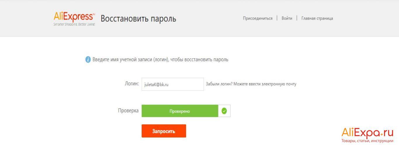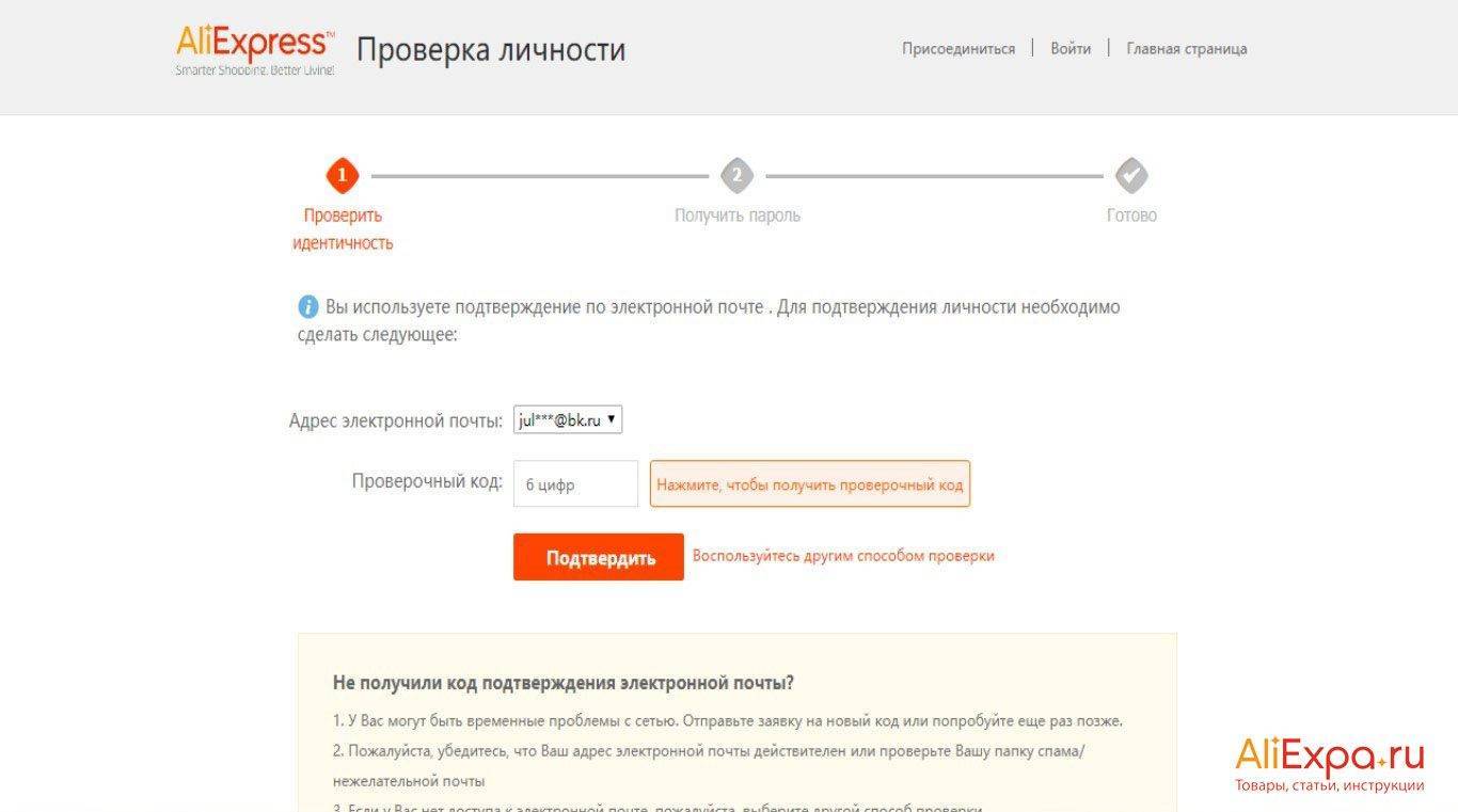 Как восстановить пароль в Алиэкспресс через электронную почту