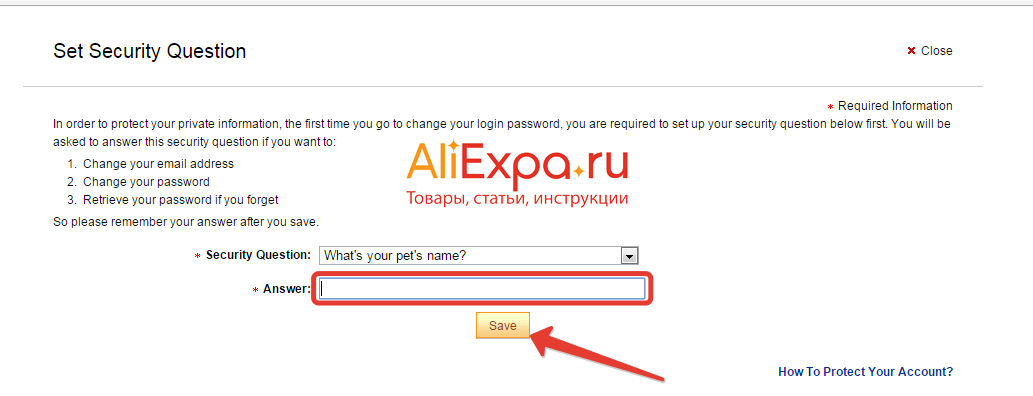 3. Установление секретных вопросов для защиты аккаунта Алиэкспресс от взлома.