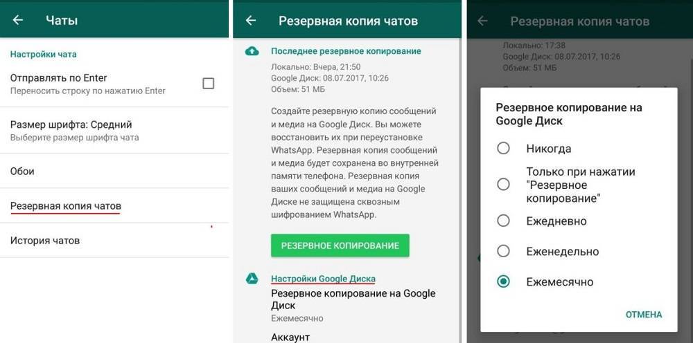 На смартфонах Android мессенджер может автоматически загружать бэкап на Google Диск