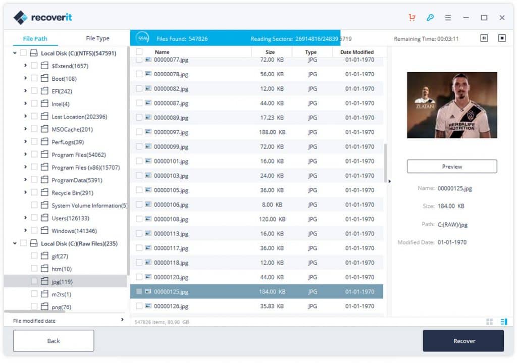 - Вы можете восстановить данные во многих форматах, более 550 видов.