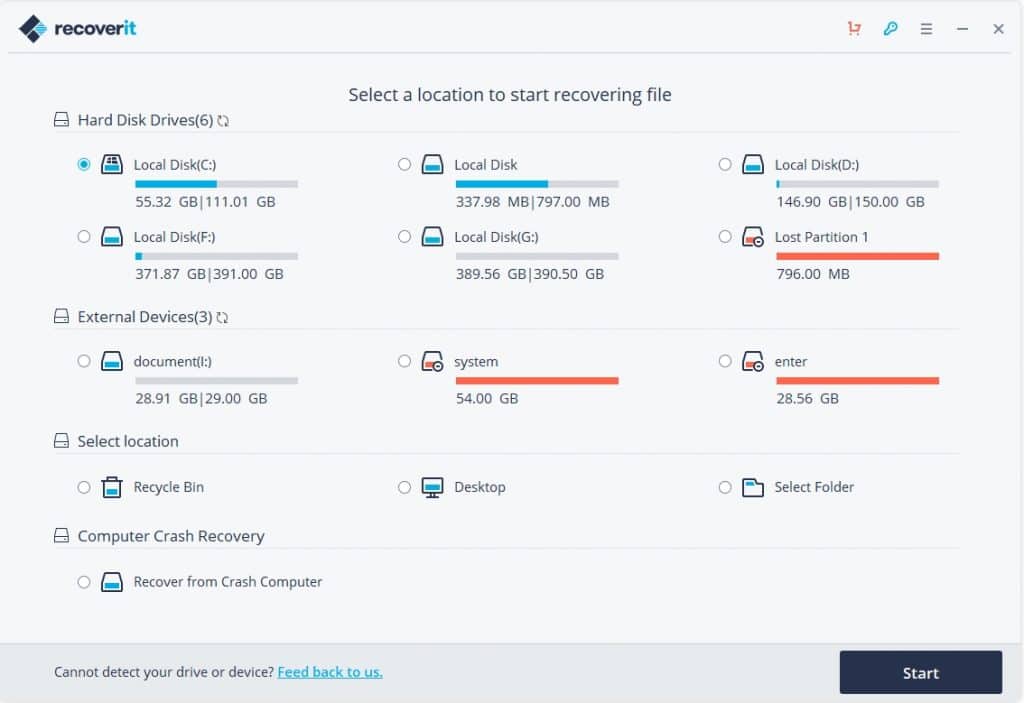 Загрузите Recoverit Data Recovery на свой компьютер, а затем установите его. Не забудьте выбрать правильную версию в соответствии с операционной системой вашего компьютера. Затем вы можете запустить его, дважды щелкнув значок запуска. И нажмите кнопку «Пуск» в главном окне.