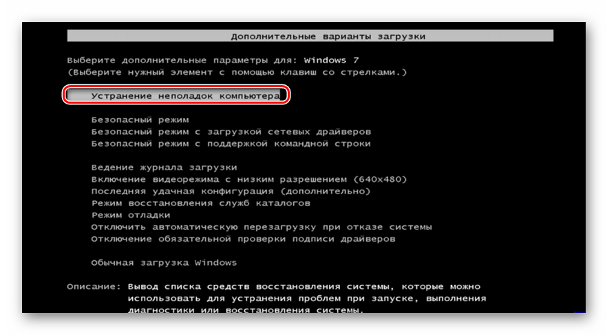 Способ №1. Восстановление при загрузке