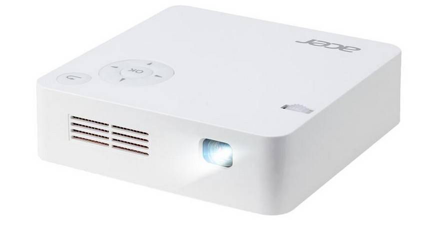 За счет использованной мощности светового потока устройство проецирует яркое и четкое изображение даже при значительном освещении комнаты, однако на лучшее качество картинки можно рассчитывать лишь при затемнении. Проекция получается правильной прямоугольной формы и не зависит от положения устройства. Диагональ изображения может достигать 100 дюймов. Есть стабильное подключение к сети Wi-Fi, разъем HDMI, а также подключение к обычному кабелю USB. Комплектуется штативом, пультом ДУ и надежным чехлом для транспортировки. Работает от аккумулятора, который обеспечит 2,5 часа при работе с максимальной яркостью и 5 часов в экономичном режиме.