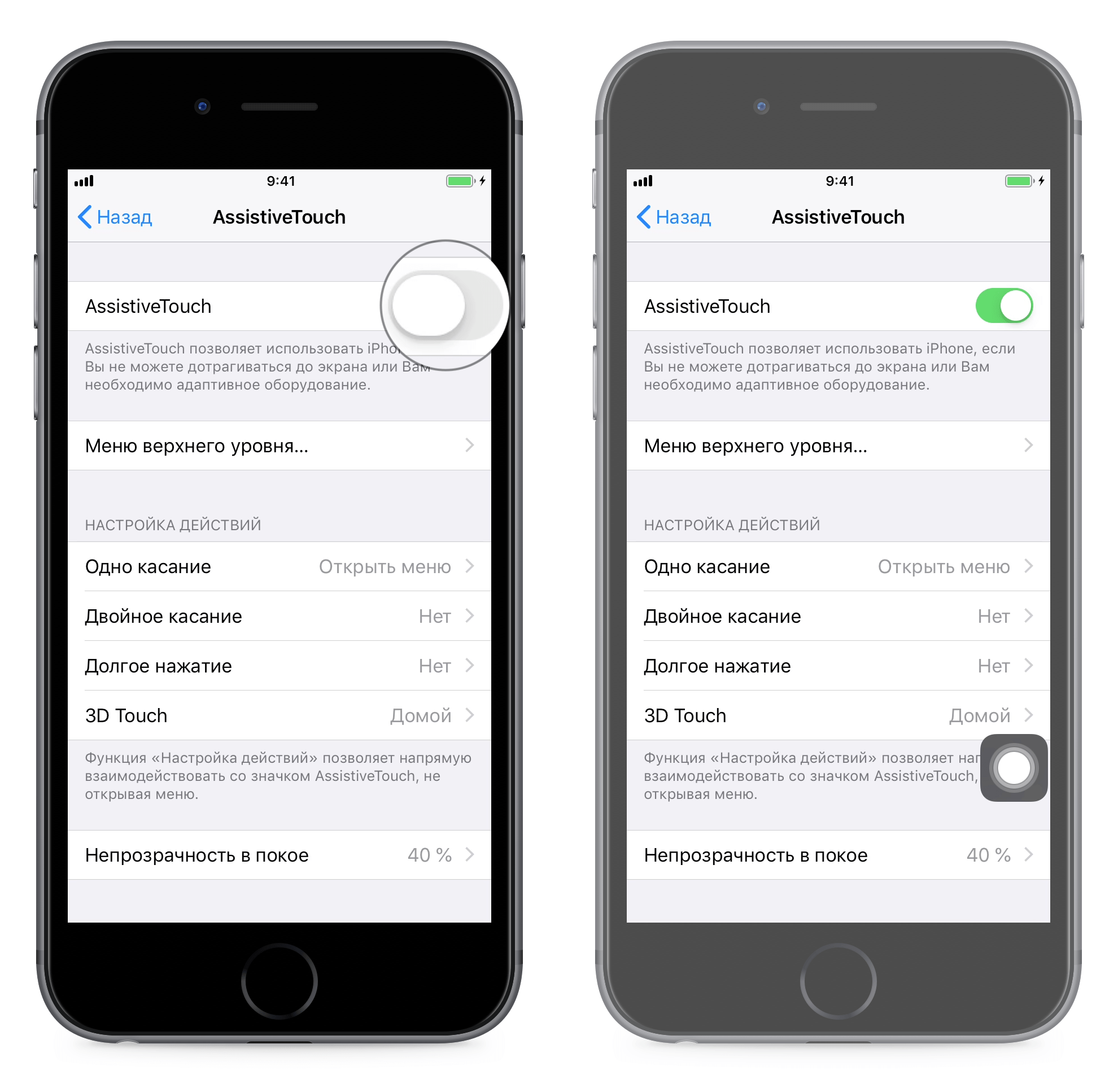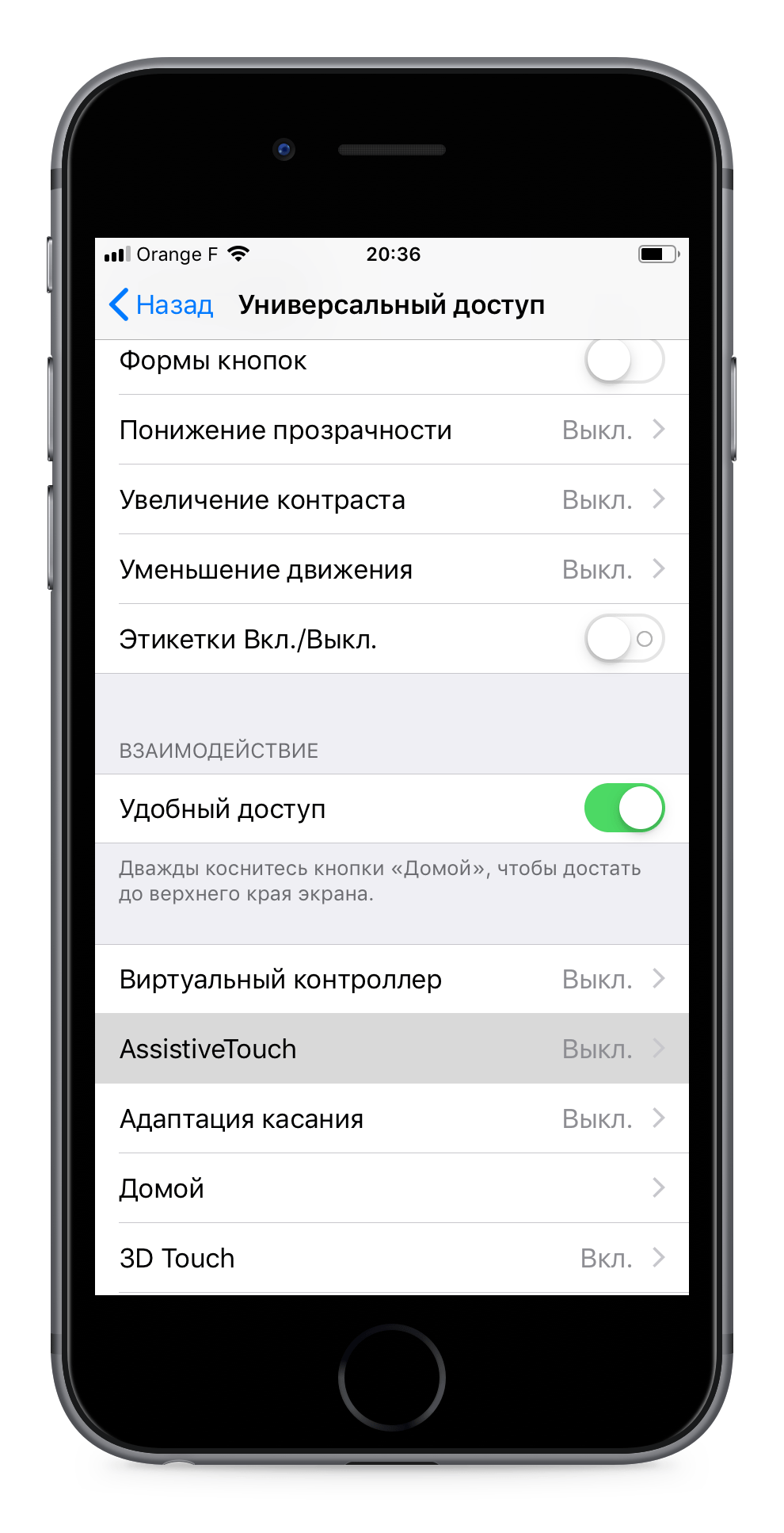 Для того, чтобы активировать полное управление iPhone при помощи прикосновений, необходимо включить функцию «Assistive Touch