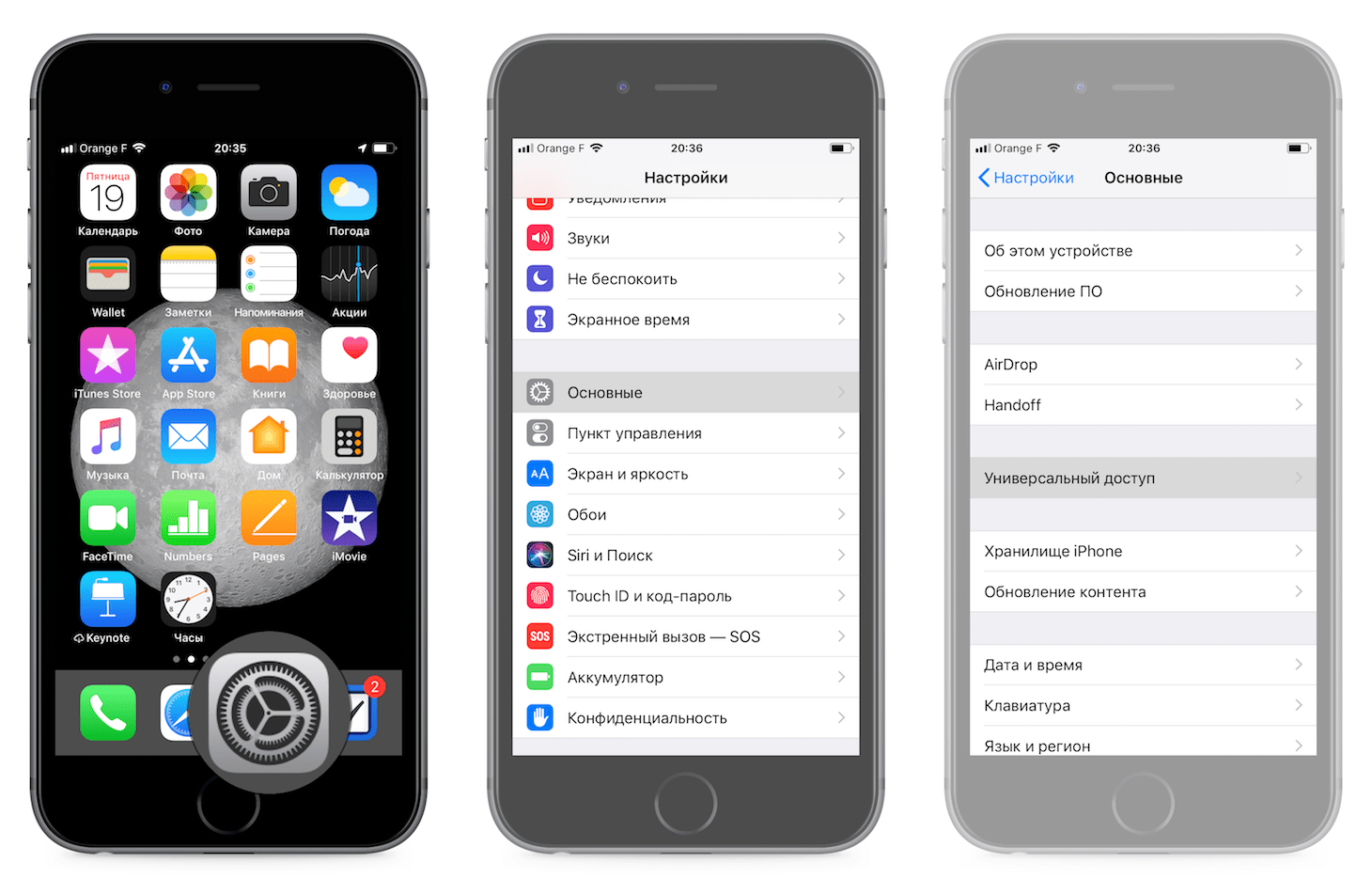 - Перейдите в Настройки -> Основные -> Универсальный доступ;