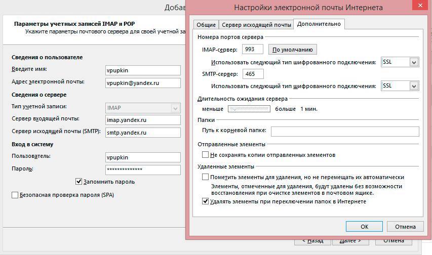 Связь по протоколу imap позволяет сохранять и синхронизировать с сервером Яндекс исходящую корреспонденцию и получать к ней доступ с различных компьютеров и устройств.