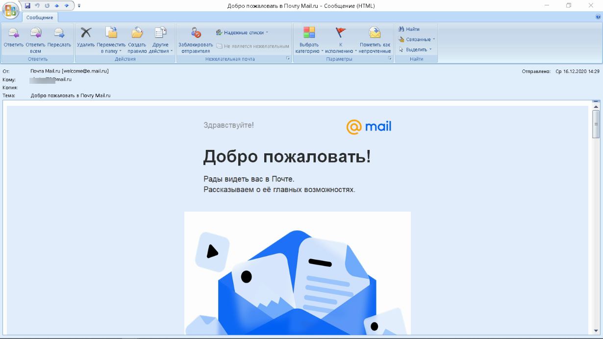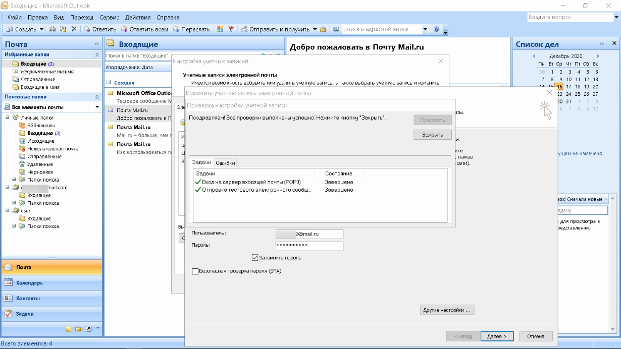 Поздравляем! Еще один виртуальный почтовый ящик локализован на вашем компьютере и доступен для дальнейшего использования в приложении MS Outlook.