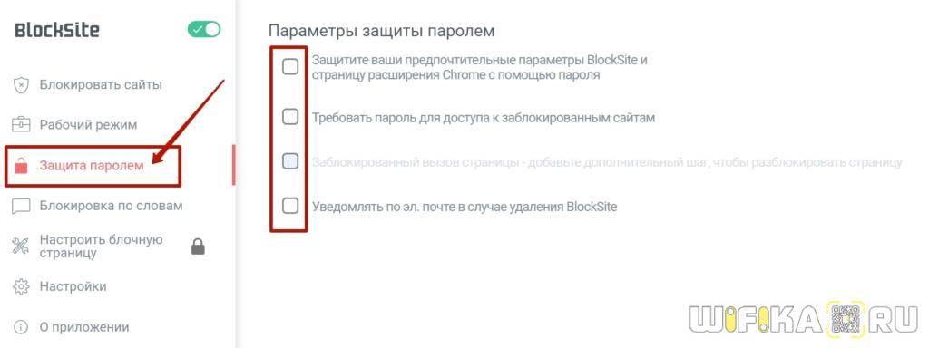 Требовать пароль при посещении заблокированных на компьютере сайтов