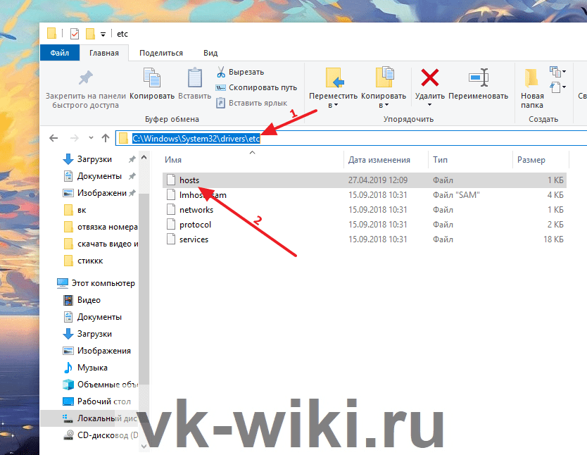 Hosts — это специальный файл, относящийся к работе системы, внутри которого есть определенный список доменов, с помощью которых происходит обращение к серверам. В этом документе администратор компьютера может править информацию о том, какие домены и сервера должны быть заблокированы. Стоит отметить, что здесь также можно блокировать и ПО на компьютере. Чтобы попасть в папку с этим файлом, в своем проводнике Windows нужно ввести следующий адрес: