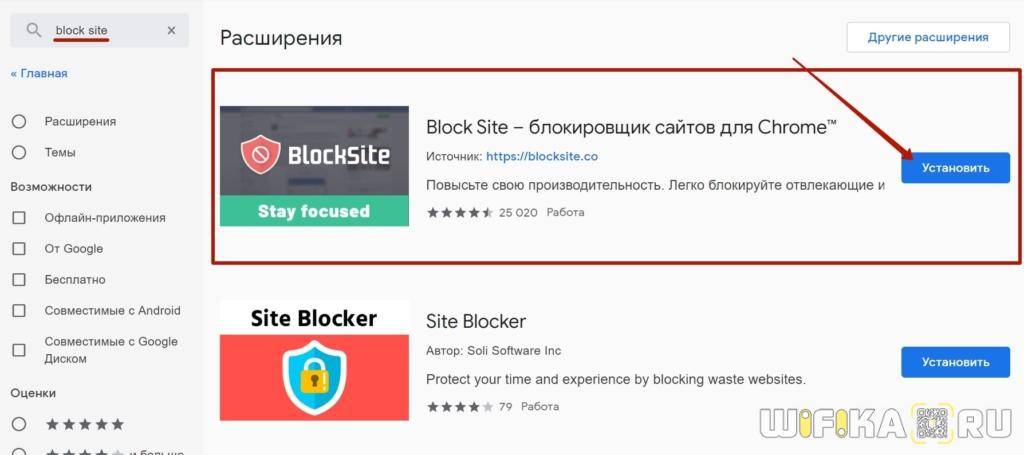 Если вы хотите блокировать сайты при помощи расширений, но приведенный выше вариант вам не подходит, воспользуйтесь магазином дополнений используемого веб-обозревателя, отыскав там другие подходящие приложения. Установите их и настройте примерно по тому же алгоритму, который был продемонстрирован только что.