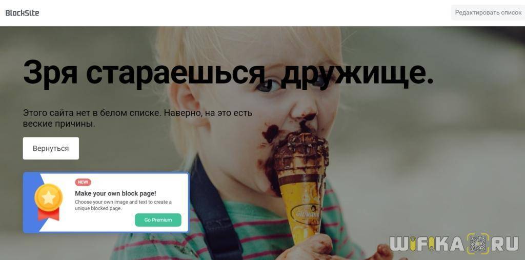 Теперь при переходе на заблокированный сайт на экран будет выводиться интересная картинка.