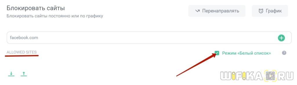 Также данный список можно поменять на белый. То есть наоборот, к сайтам в нем будет разрешен доступ с компьютера, а остальные будут заблокированы для посещения.