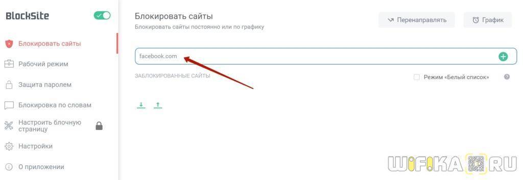 - нажав на него, вы сможете добавлять адреса сайтов, которые хотите заблокировать;