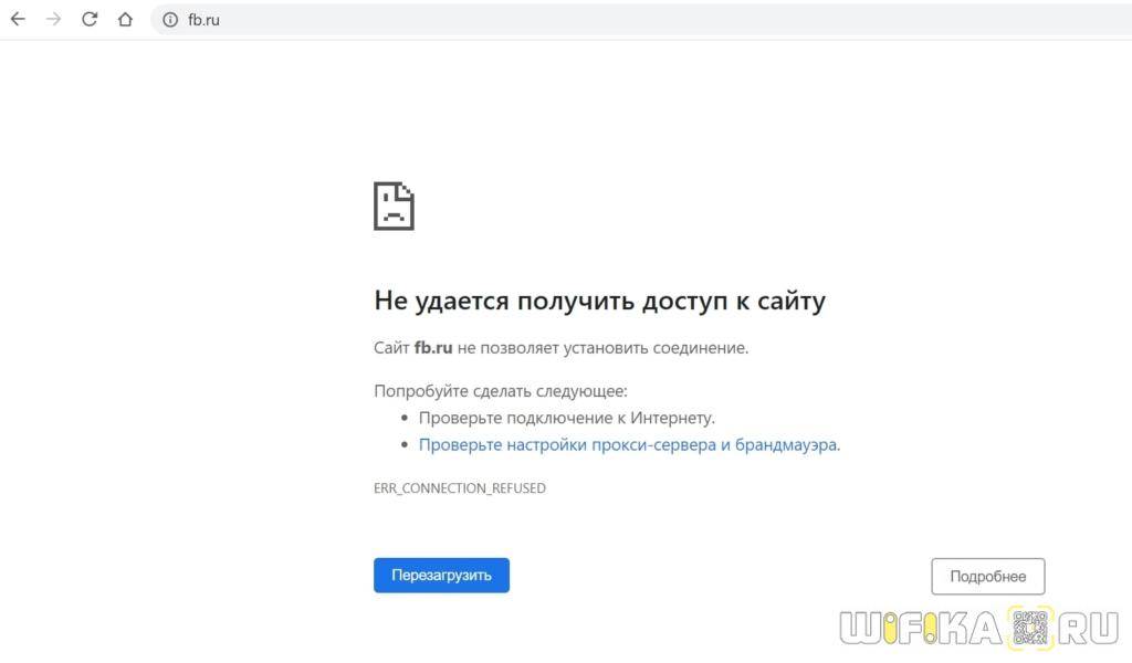 Теперь при попытке обратиться к заблокированному ресурсу пользователь получит ошибку «Доступ в Интернет закрыт».