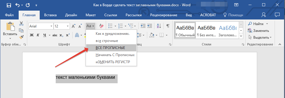 3. Выберите необходимый тип регистра. В нашем с вами случае — это “ВСЕ ПРОПИСНЫЕ”.