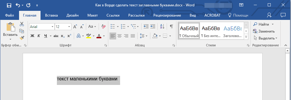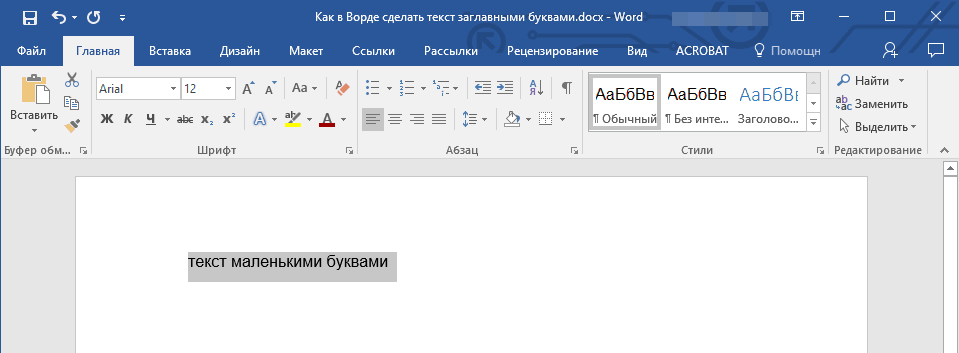Если вы в разделе «Главная» не можете найти данный инструмент «Аа» (у меня Word 2016, возможно в Word 2007 и старее — этого нет) — то выделите нужный текст, и нажмите сочетание кнопок Shift+F3.