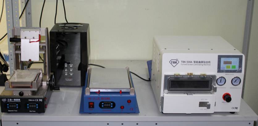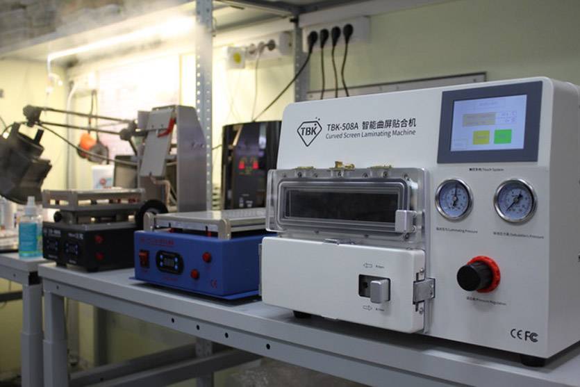 Понятное дело, заменять дисплей вручную будет не каждый сервис. Некоторые закупают станки из Китая для плотной и заметно более качественной установки стекла. Вроде отлично, разве нет?