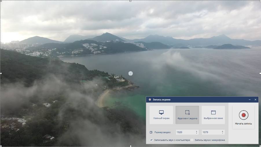 окно открытой программы. Также вы можете записать звук с компьютера или микрофона.