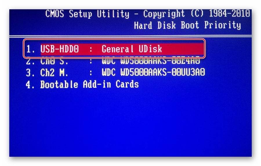 Выставление флэшки на первое место в загрузке БИОС при установке операционки