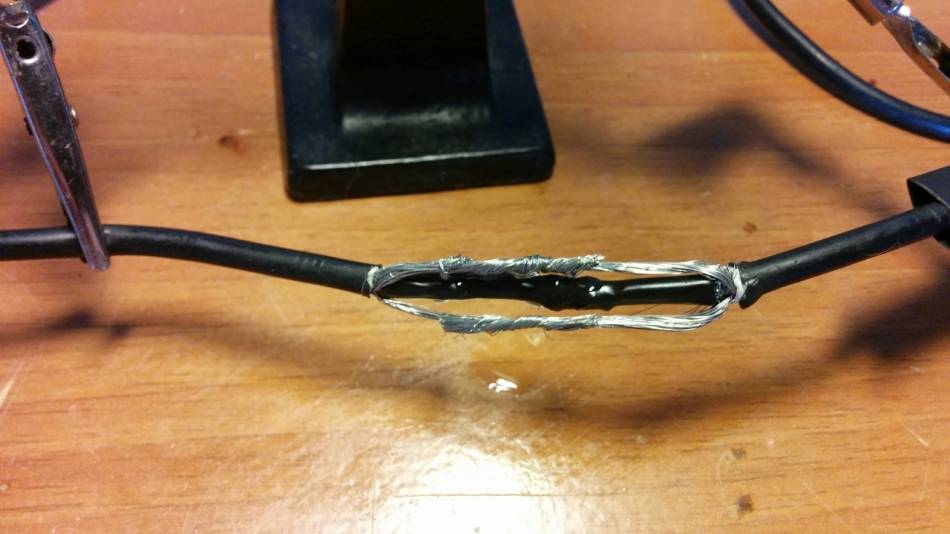 - Когда контакты найдены, к ним требуется подсоединить два медных провода, которые для надежности крепят клейкой лентой.