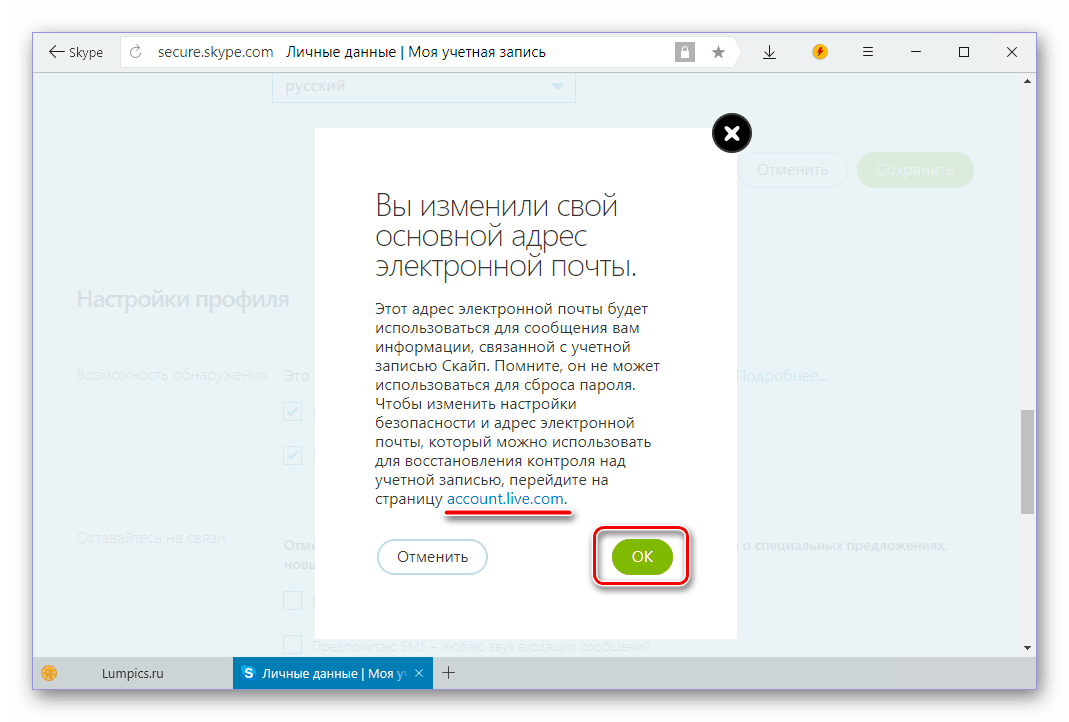 Изменить номер телефона в Скайпе можно также, как в предыдущем описании с почтой.