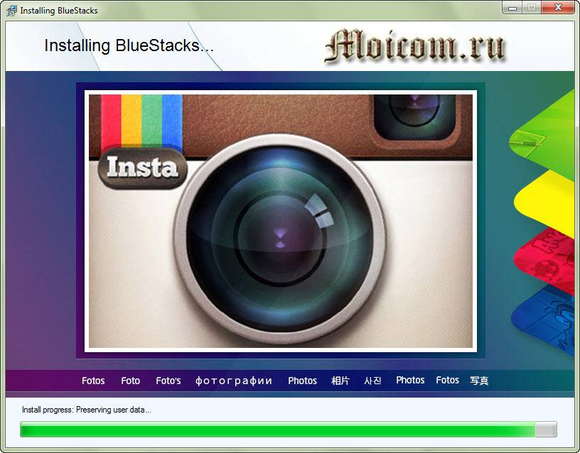 Далее нажимаем установить, происходит загрузка приложения Instagram. После того, как все скачалось и установилось, вновь заходим в BlueStacks, находим Инстаграм и заходим в него.