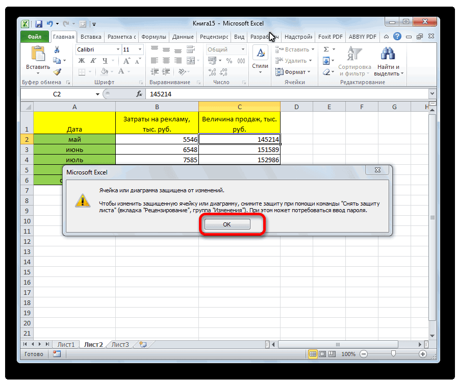 Установка и снятие защиты ячеек стандартными средствами Excel