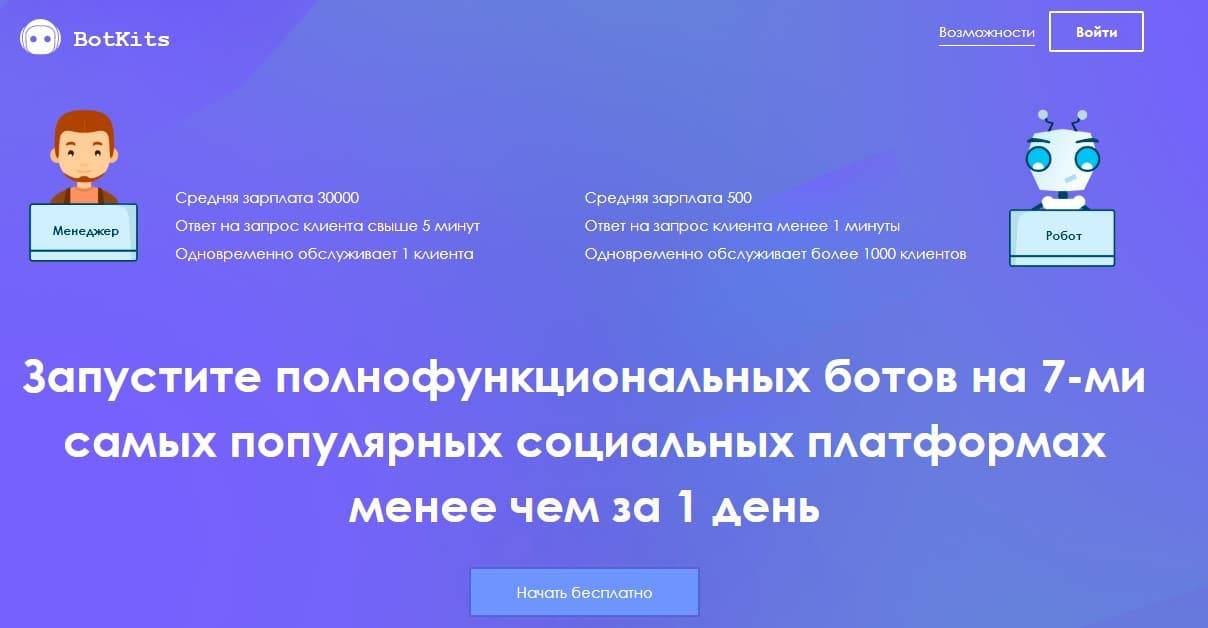 Первые 4 чат-бота в течение 15 дней бесплатные. Затем — от 4000 рублей за 2 месяца.