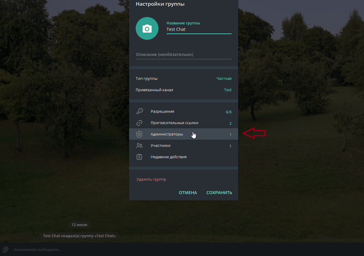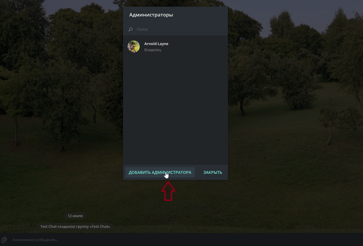 - Зайти в управление группой и нажать на кнопку «Добавить администратора»;