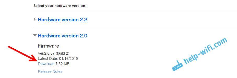 Возвращаемся обратно на сайт, и открываем вкладку, которая соответствует аппаратной версии нашего маршрутизатора. У меня получается “Hardware version 2.0”.