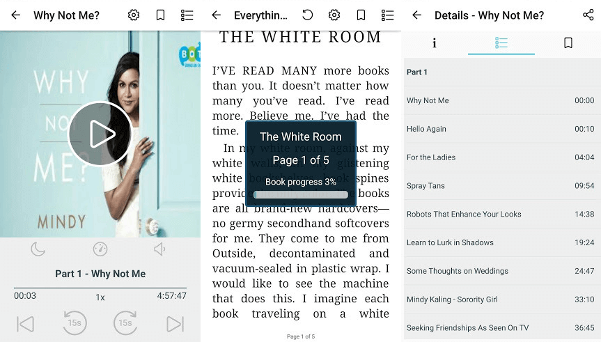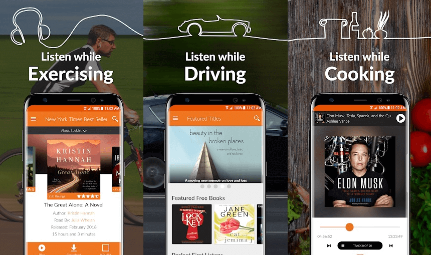 Облачная платформа Audiobooks.com от Audiobooks также предлагает надёжное приложение для аудиокниг на Андроид. Софт предлагает подписчикам выбрать аудиокниги любого жанра из библиотеки с более чем 45000 книгами, которые можно прослушивать или загружать для прослушивания в автономном режиме. Утилита включает в себя переменную скорость воспроизведения, автоматическую закладку и таймер сна. Кроме того, программа включает в себя синхронизацию между устройствами, позволяющую слушателям легко переключаться со своего смартфона на планшет или компьютер, не теряя места в аудиокниге.