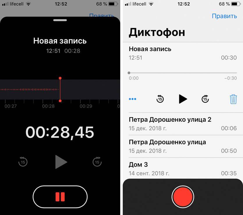 Стандартный «Диктофон» на дополнительном iPhone