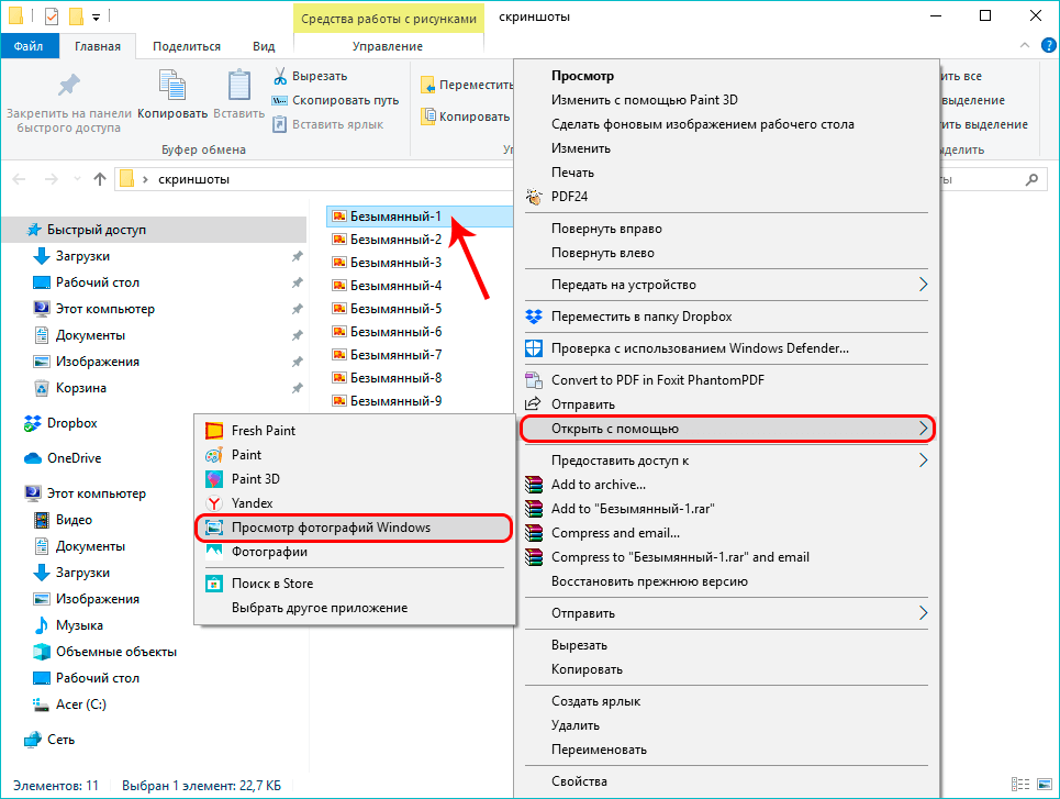 - Второе, откройте изображение любой другой программой, которая есть на вашем компьютере. Чтобы сделать это придется прибегнуть к кнопке «Открыть при помощи». Выберите проверенную галерею и попробуйте еще один раз открыть нужный вам файл. Возможно, ваш файл открывался программой, которая не предназначена для работы с изображениями.