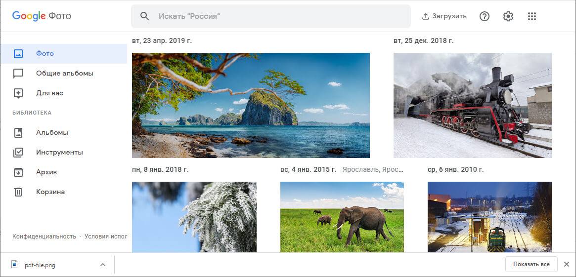 Это универсальное решение, которое подойдет для любой платформы. Правда, для использования придется загрузить фотографии на сервер, перекинув их с телефона или компьютера. Все загруженные снимки сервис автоматически рассортирует по времени съемки, а также по местам, объектам, видео и т. д. Альбомами можно делиться с друзьями или родными.