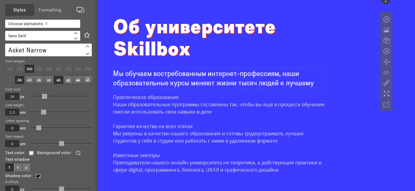 Так выглядит инструмент Font Playground: на настройку стилей ушло три минуты.