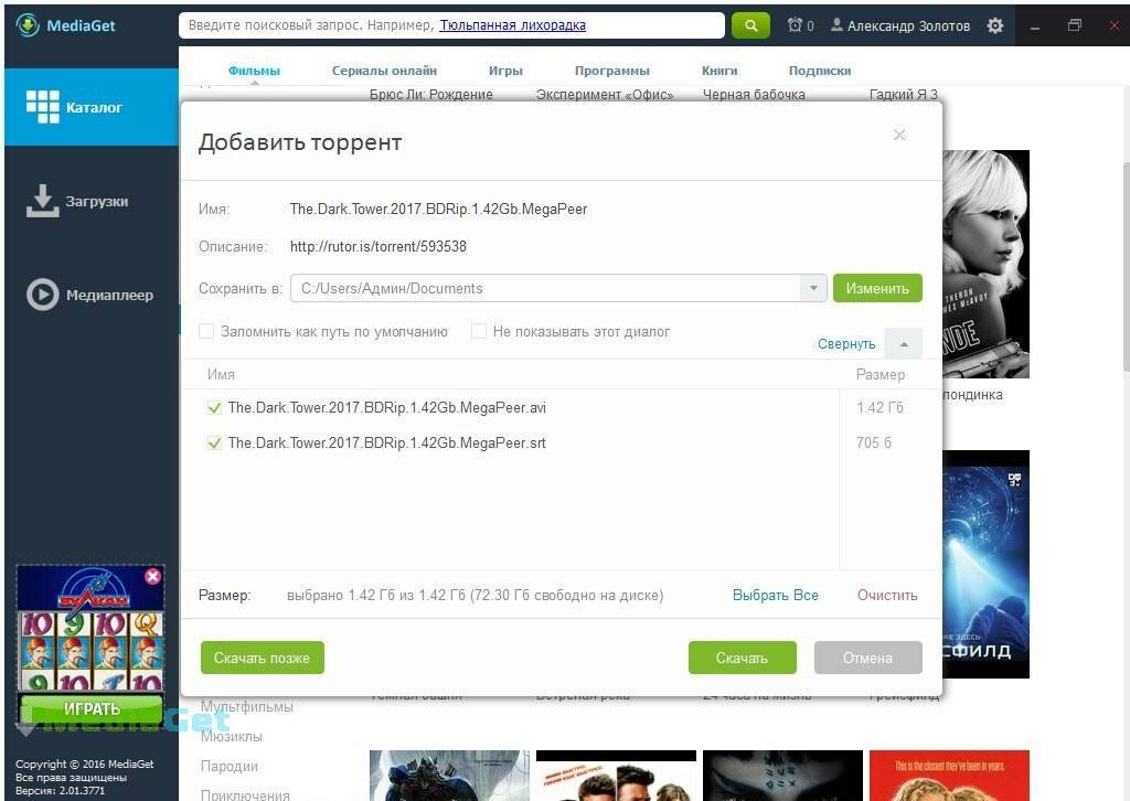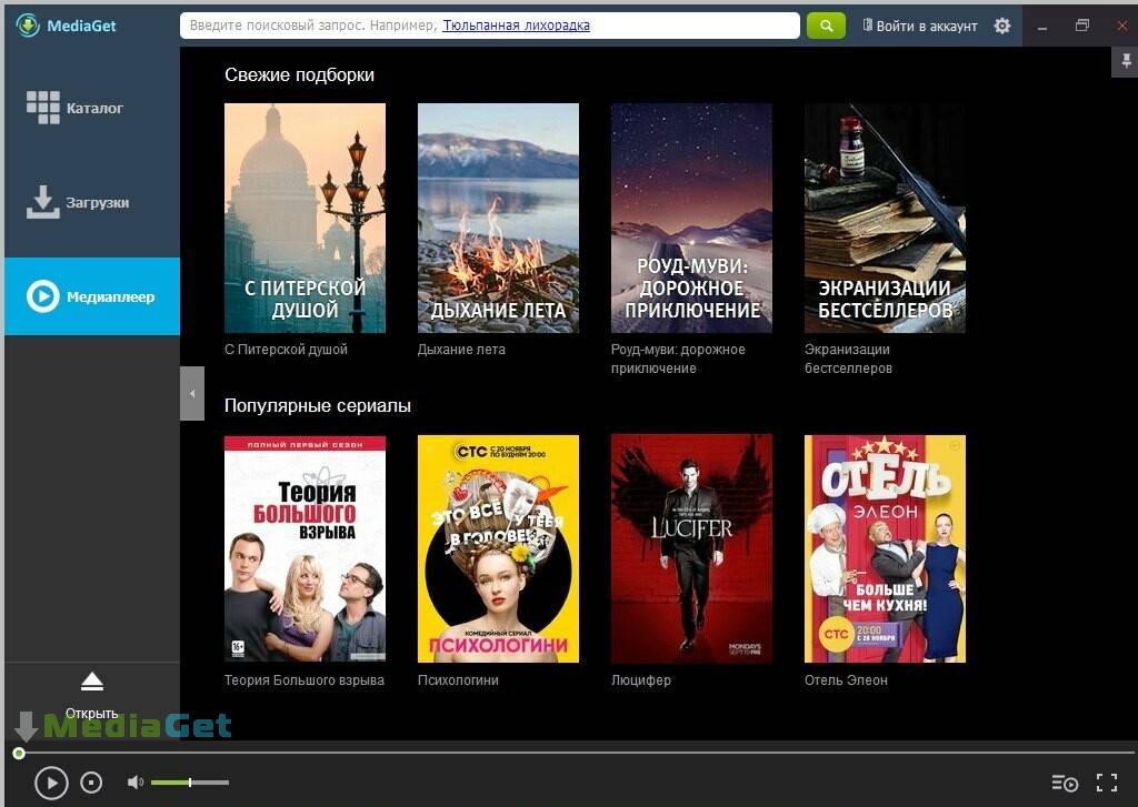 Mediaget оснащена уже встроенным плеером, который позволяет клиенту непосредственно в этом же инструменте для воспроизведения файлов просматривать видео и слушать музыку.