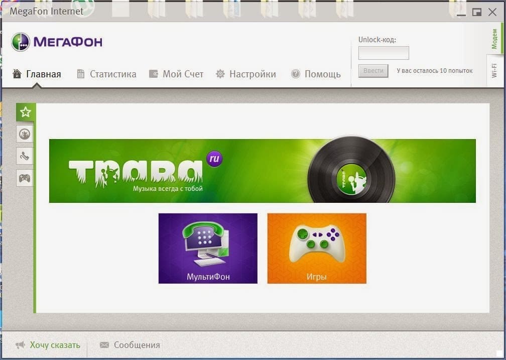 После того, как вы его получите, вам следует запустить программу «Мегафон Интернет» на компьютере (предварительно подсоедините к нему модем, но без сим-карты) и ввести указанный код. После этого устройство будет перепрошито, и вы сможете вставить в него любую карту других операторов.