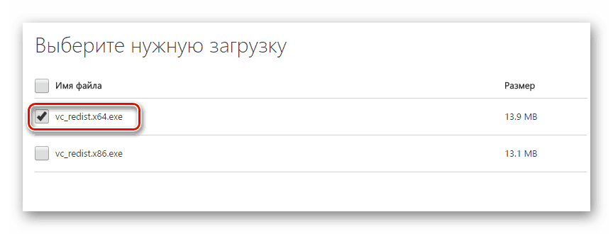 Выбор нужного файла. Для 32-х бит нужно «vc_redist.x64.exe», а для 32-х бит нужно «vc_redist.x86.exe».