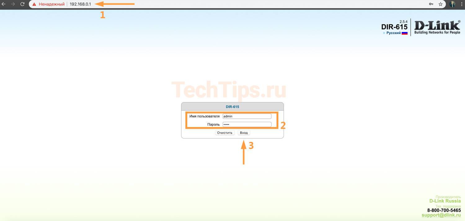 Сначала нужно зайти в веб интерфейс роутера. Откройте браузер, в адресной строке введите 192.168.0.1. Появится окно авторизации. В поле логин введите admin, пароль — admin, стандартные данные. Если выдаст ошибку, а логина с паролем вы не знаете — сбросьте на заводские.